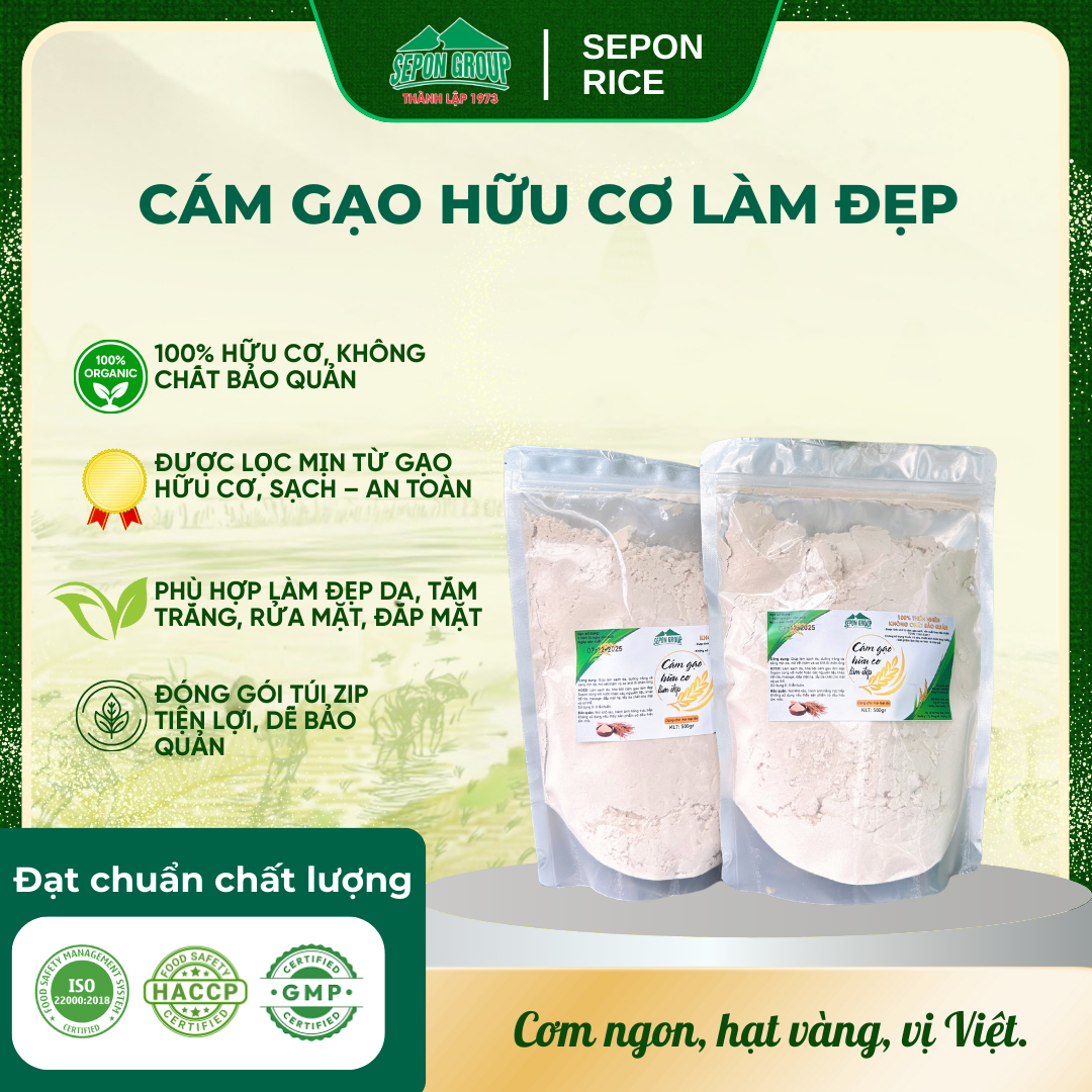 Cám gạo hữu cơ Sepon được xay mịn từ gạo sạch, giữ nguyên dưỡng chất tự nhiên, không hóa chất, không chất bảo quản. Là nguyên liệu làm đẹp truyền thống giúp chăm sóc da an toàn, lành tính và hiệu quả ngay tại nhà.